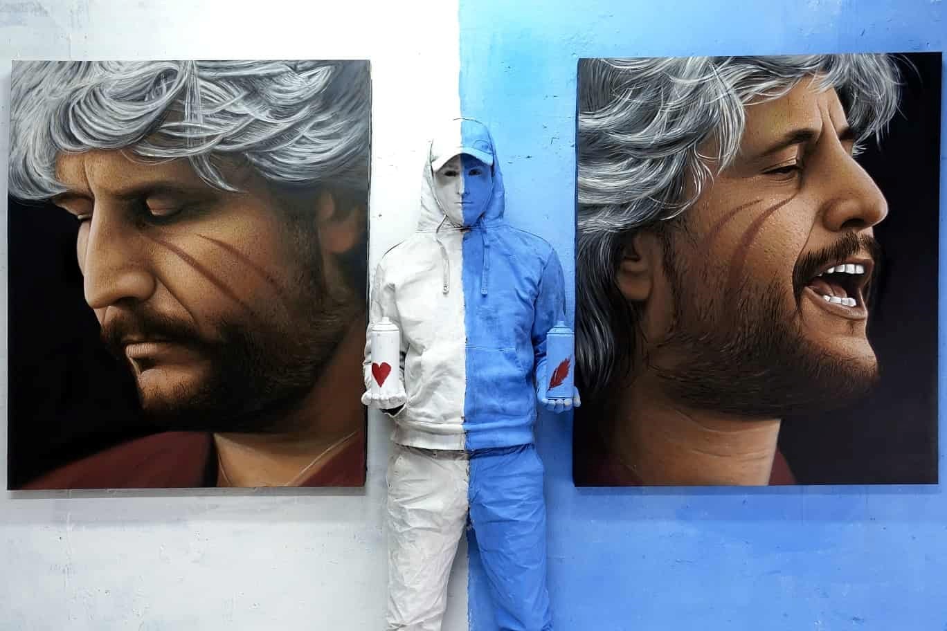 Lo street artist Jorit, noto per le gigantografie iperrealistiche di volti di personaggi famosi su pareti di grandi fabbricati, non è nuovo a simili performance: tra le più importanti vanno ricordate le raffigurazioni di San Gennaro nel quartiere Forcella, di Maradona a San Giovanni a Teduccio, di Hamsik a Quarto e, ultimo in ordine di tempo, il murale più alto del mondo realizzato al Centro Direzionale di Napoli per l’edizione estiva delle Universiadi 2019.