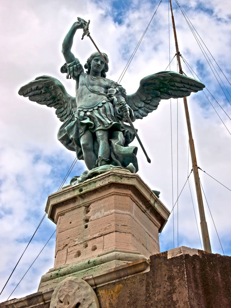 Nel 590 D.C. Roma era stremata dalla peste Papa Gregorio Magno, quindi, chiamò l’intero popolo in processione per scongiurare la fine della terribile epidemia. Mentre questa processione si snodava sotto il sepolcro di Adriano, la leggenda narra che apparve a tutti, sulla sua sommità, l’Arcangelo Michele in tutta la sua magnificenza, nell’atto di rinfoderare la sua spada. Tale gesto fu interpretato dal Papa come l’annuncio della fine del flagello della peste, cosa che infatti avvenne subito dopo.