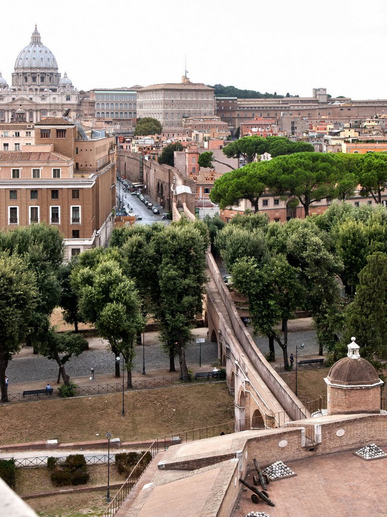 L’edificio risalente al 123 D.C., ideato da Adriano come sepolcro per sé e la sua famiglia, è collegato al Vaticano attraverso un passaggio sopraelevato, chiamato Passetto. Il passaggio era una via di fuga per il Papa, ma anche una possibilità da parte del Vaticano per poter accedere direttamente alla riva destra del Tevere e da lì controllare la sicurezza dello stato papale. La fuga più eclatante fu quella di Papa Clemente VII che, nel 1527, riuscì a sfuggire ai Lanzichenecchi che devastavano la città.