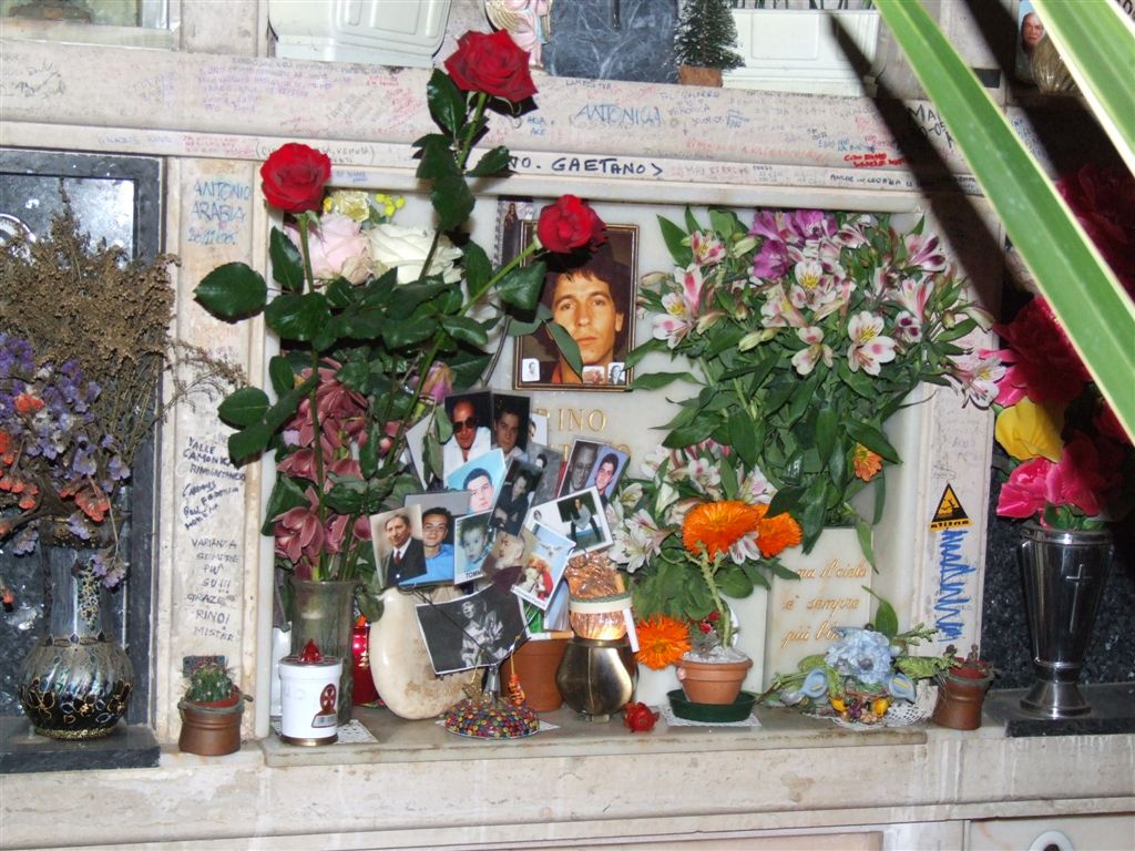 Nel 2013 il loculo dove riposano le spoglie di Rino Geatano, al Verano, è stato preso di mira da ignoti che hanno fatto razzia di addobbi e oggetti lasciati dai fan davanti alla lapide. A finire nelle mani dei predatori anche la riproduzione dell’ukulele con il quale il cantante si esibì al festival di Sanremo del 1978 in marmo afyon che la sorella Anna, commissionò ad un artista per un prezzo, all’epoca, di 500.000 lire. L’opera, che reca l’epigrafe “sognare la realtà, vivere un sogno, cantare per non vivere niente”, potrebbe finire sul mercato illegale dei collezionisti di cimeli.